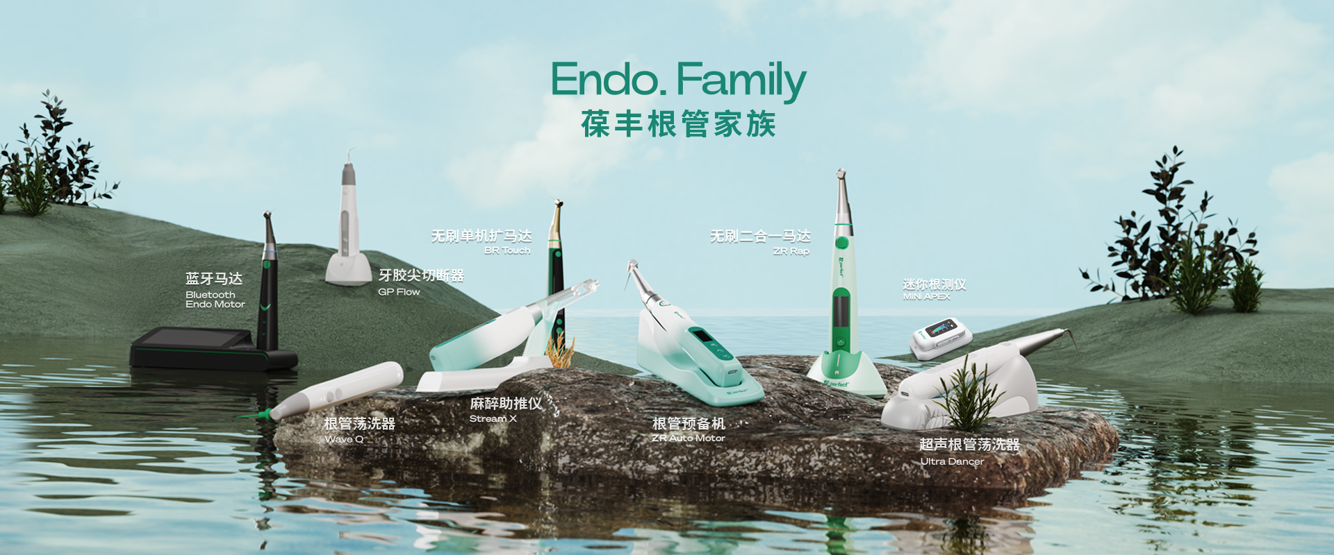 電子產(chǎn)品:根管預(yù)備機(jī);根管測(cè)量儀;根管蕩洗器;熱熔牙膠充填系統(tǒng);無線便攜式麻醉儀;生物陶瓷治療輔助工具。